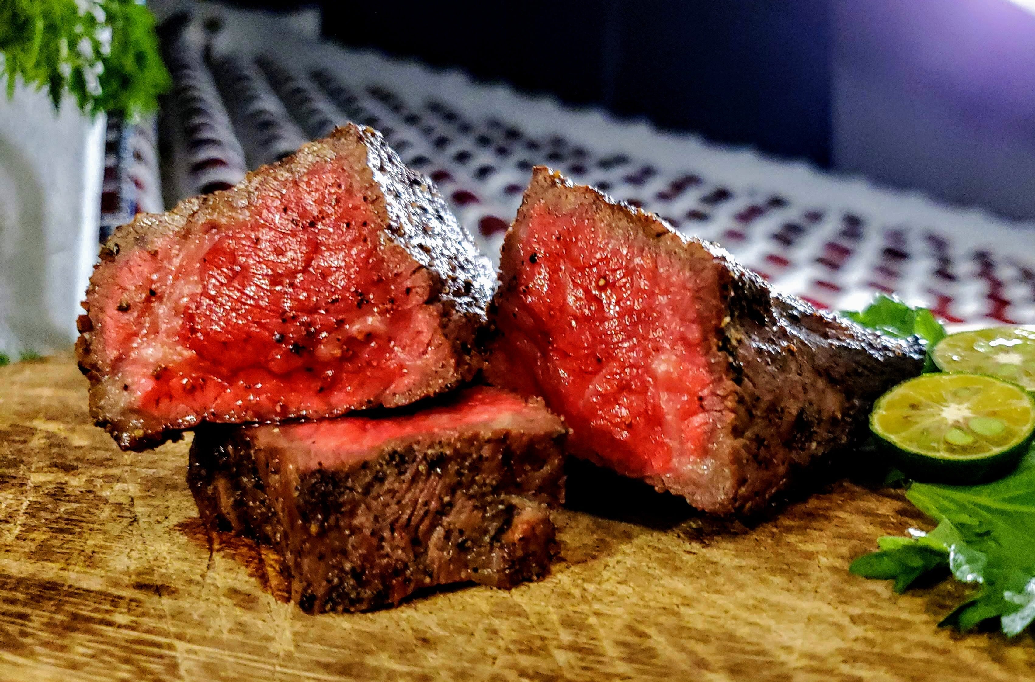 石垣島で売り切れ必須のプレミアムビーフ!! A5ランクの石垣牛モモ肉をサンゴと炭火で焼き上げました。(300g~400g)